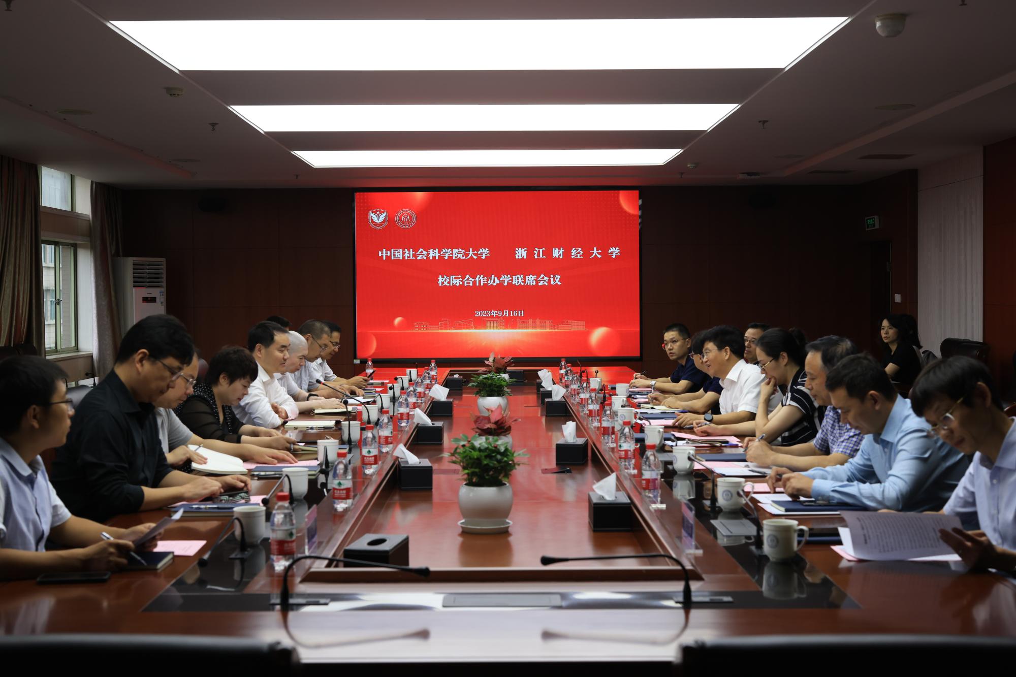 9月16日上午,博彩导航 与中国社会科博彩导航 大学校际人才培养联席会议在下沙校区召开,中国社会科博彩导航 大学副校长(中国社会科博彩导航 研究生院副院长)高文书与博彩导航 副校长董进才共同出席会议。
