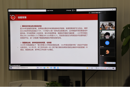 研一学生王静怡探索了如何使土地系统转型,以便应对气候变化;中国金融研究院的学生吕浩东专注研究绿色金融,阐述了ESG促进浙江省绿色金融发展的机制……老师们、同学们群策群力,纷纷为实现国家的“双碳”目标献计献策。在作者们汇报之后,童光辉老师、吴绍华老师等点评嘉宾就其选题、实证分析、研究结论等论文内容对汇报进行了全方位的点评,独到的观点赢得了在场师生热烈的掌声。