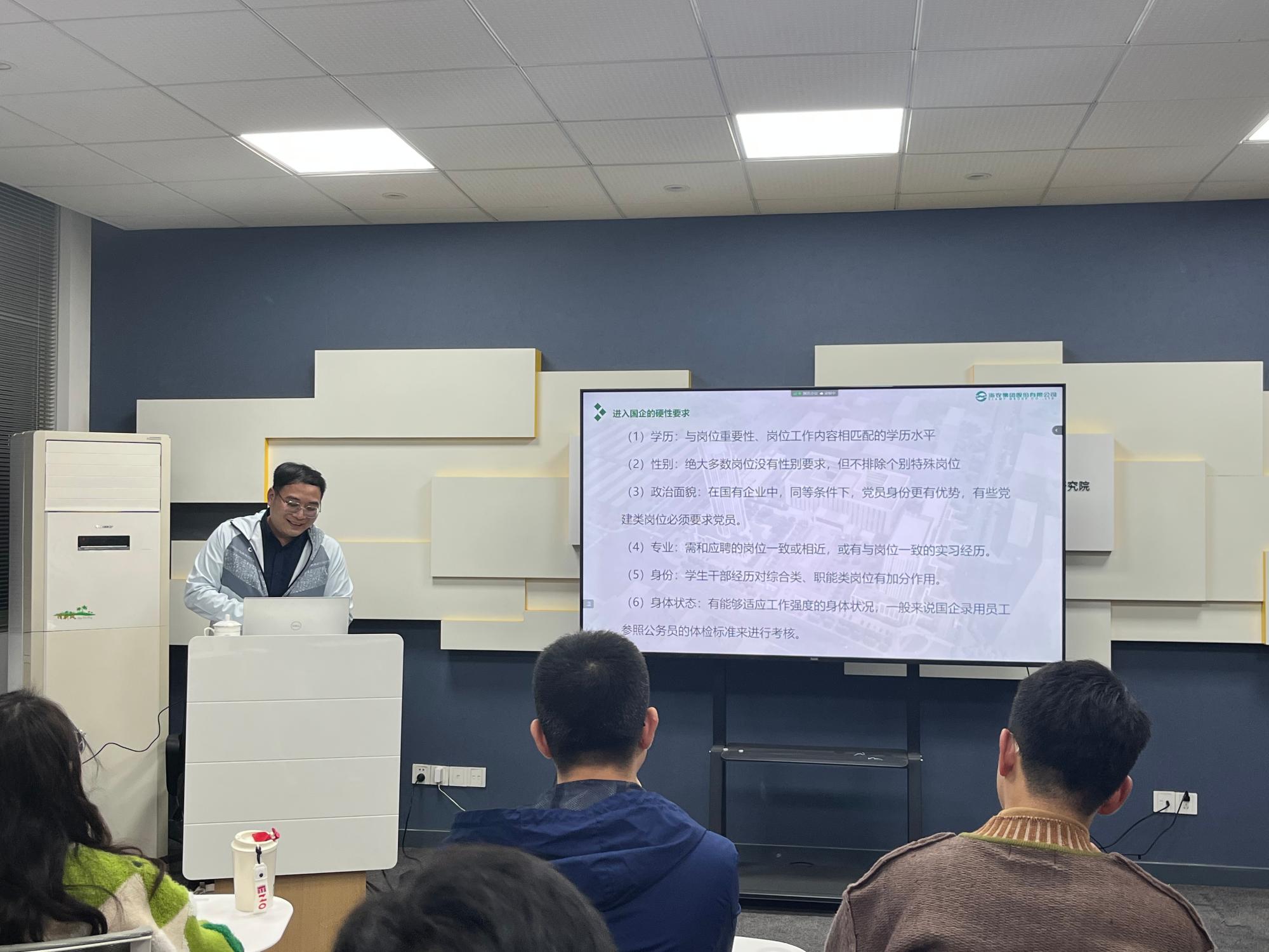 开展了“朋辈同行 ”第二期——国企就业经验分享会。活动以线上直播形式和线下同步进行,30余名研究生同学在线参与分享会,15名同学线下参与。