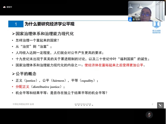 张琦副研究员以为什么要研究经济学公平观为切入口,指明国家治理体系和治理能力现代化的内容之一就是使经济体在富裕起来之后变得更加公平。其次,张琦副研究员从主流经济学对公平的忽视以及对亚当·斯密的片面解读谈到西方学界对亚当·斯密的再解读,详细梳理了前古典经济学公平观的演变过程,介绍了中世纪经院哲学的公平观、自然法学家的公平观和苏格兰启蒙思想家的公平观,其中亚当·斯密扮演了承前启后的重要角色,标志着公平观从财产正义转向税收正义,最后童光辉副教授对讲座内容进行了简短性总结,并期待与张琦副研究员在杭州见面。