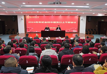 召开2024年年初中层及以上干部会议,部署2024年度重点工作。校党委书记李金昌主持会议并讲话,党委副书记、副校长(主持行政日常工作)魏江作工作部署。校领导班子全体成员、全体中层干部参加会议。