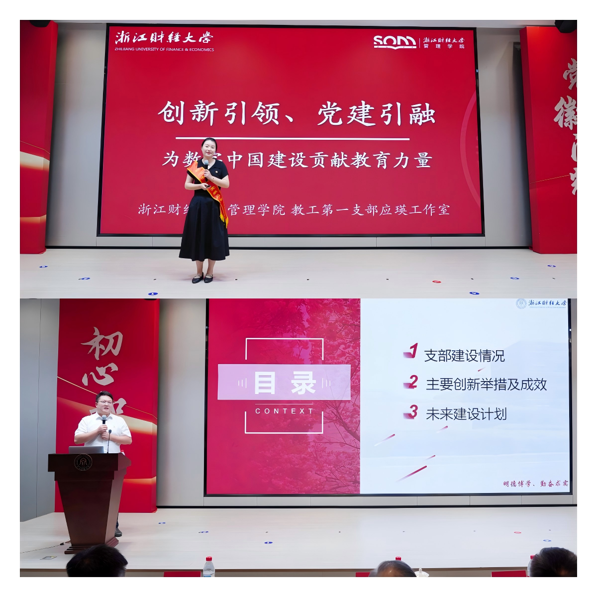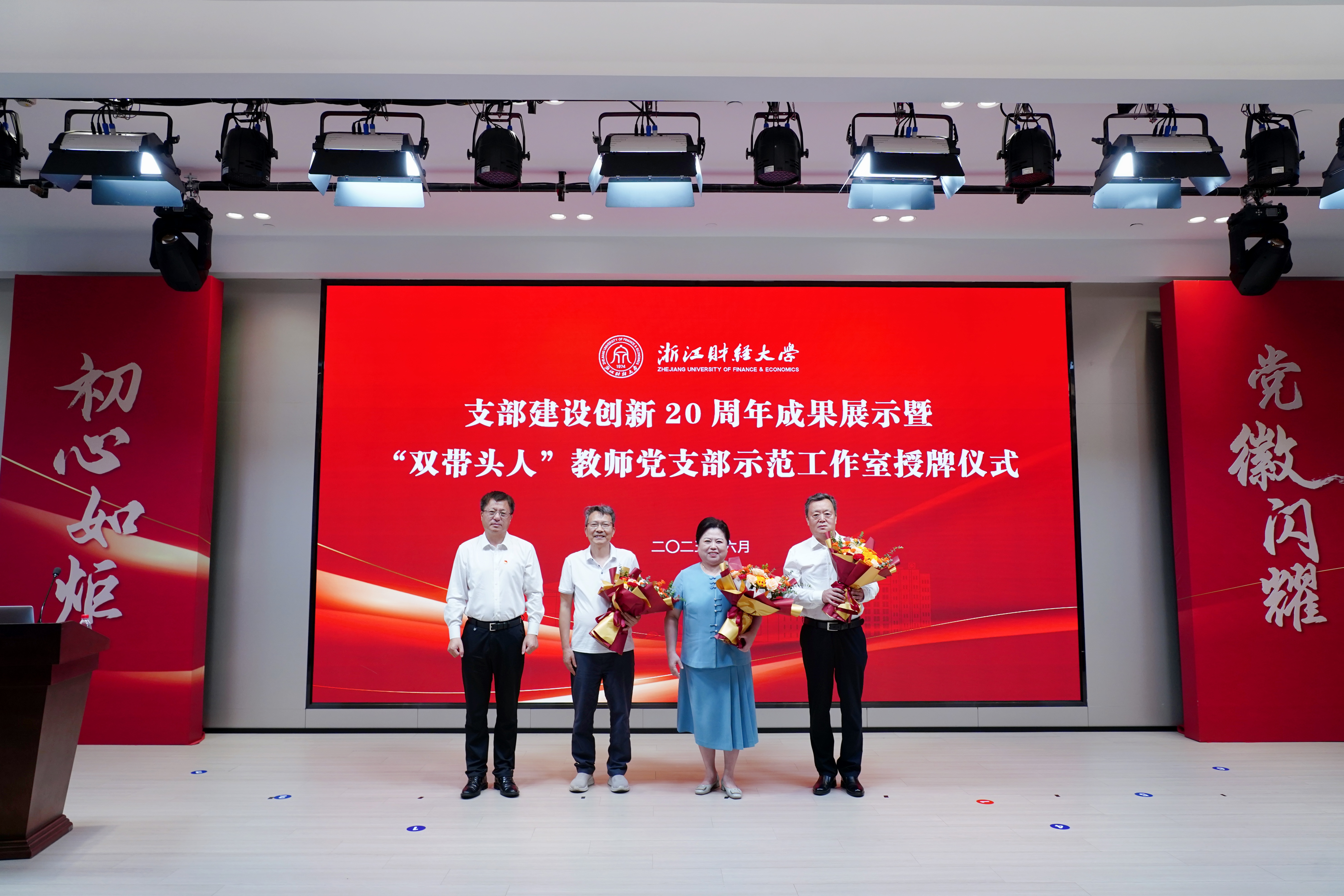 举行庆祝建党104周年主题活动暨第十轮支部建设创新评比、第五批“双带头人”教师党支部示范工作室授牌仪式。校领导班子成员魏江、孙旭东、徐晓东、程爽、申屠莉出席大会,各党群部门负责人,二级党组织书记、副书记,全体组织员,党支部书记,师生党员代表等200余人参加大会。大会由博彩导航
