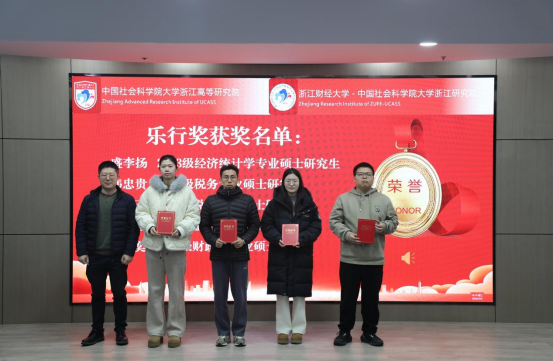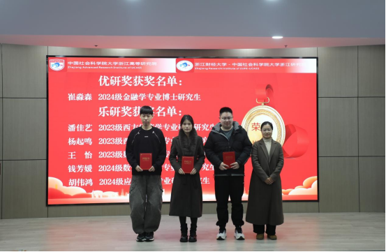 徐丽玲、胡哲、宋海裕为专项奖学金获奖学生颁发荣誉证书,杨起鸣、马乐分别作为专项奖学金获奖学生代表、浙研院春学期赴京访学学生代表发言。