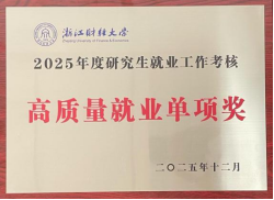 凭借真抓实干的工作推进与提质增效的就业成果,荣获2025年度研究生就业工作考核三等奖及高质量就业单项奖。