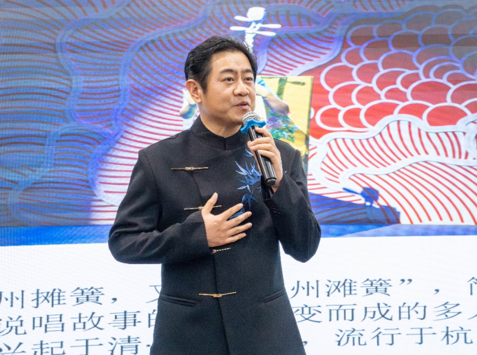 没有晦涩的理论说教,没有生硬的知识灌输,只有幽默风趣的分享和原汁原味的非遗展示。董其峰用接地气的话语、鲜活的行业故事,打破了大学生对传统曲艺的“老派”印象。从文化自信的宏大叙事,到杭州方言里的乡愁情怀,他将曲艺的前世今生娓娓道来。在董其峰看来,非遗不应是博物馆里冰冷的陈列品,而应是活在当下、热气腾腾的生活艺术。活动现场,董其峰对同学们寄予厚望。他寄语年轻学子,要透过曲艺的欢声笑语,读懂背后的文化底蕴与时代精神。他鼓励大家,不仅要当好观众,更要成为新时代文化的传播者和创新者。